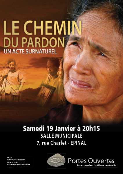 Conférence à 20h30 avec le reportage ’’Le chemin du pardon’’ à la salle Inter Jeunes 7 rue Charlet Epinal . Accueil à partir de 20h15