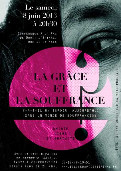 Nous organisons le samedi 8 juin 2013 à 20h30 à la fac de droit d'Epinal, rue de la maix, une conférence sur la grâce et la souffrance.