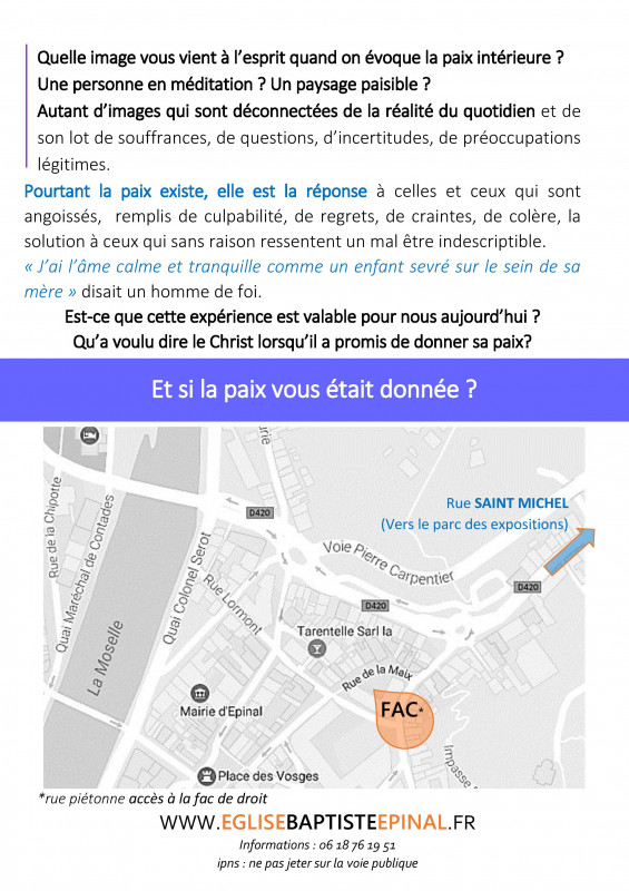 Conférence à la faculté de droit le samedi 1 février à 17h30: "Est-il possible de trouver la paix?".