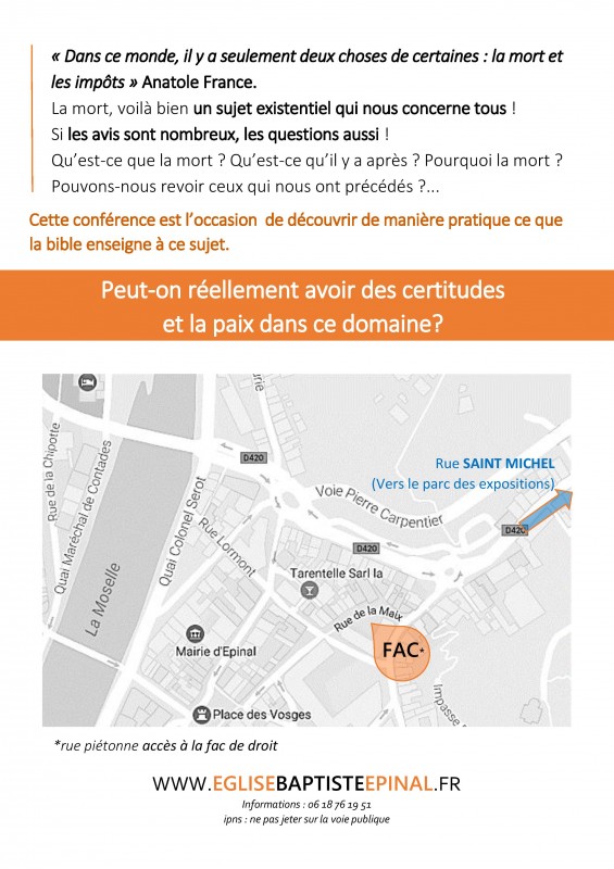 Conférence à la faculté de droit le samedi 23 juin à 17h30: "La mort... et après?"