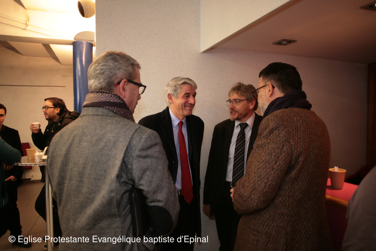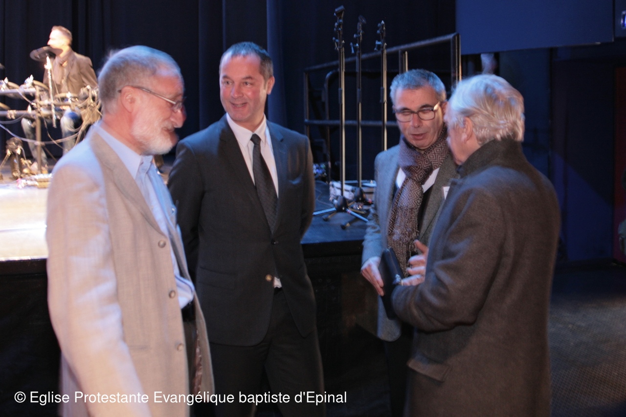 Le 18 novembre nous avons organisé conjointement avec une dizaine d'églises du CNEF88 (Antenne locale du Conseil National des Evangéliques de France) une célébration à l'auditorium de La Louvière en présence des autorités de la ville qui nous ont fait l'honneur de participer (Monsieur Nardin 1er adjoint au maire, Monsieur Viry Député, Monsieur Jourdain vice-président du conseil départemental).
