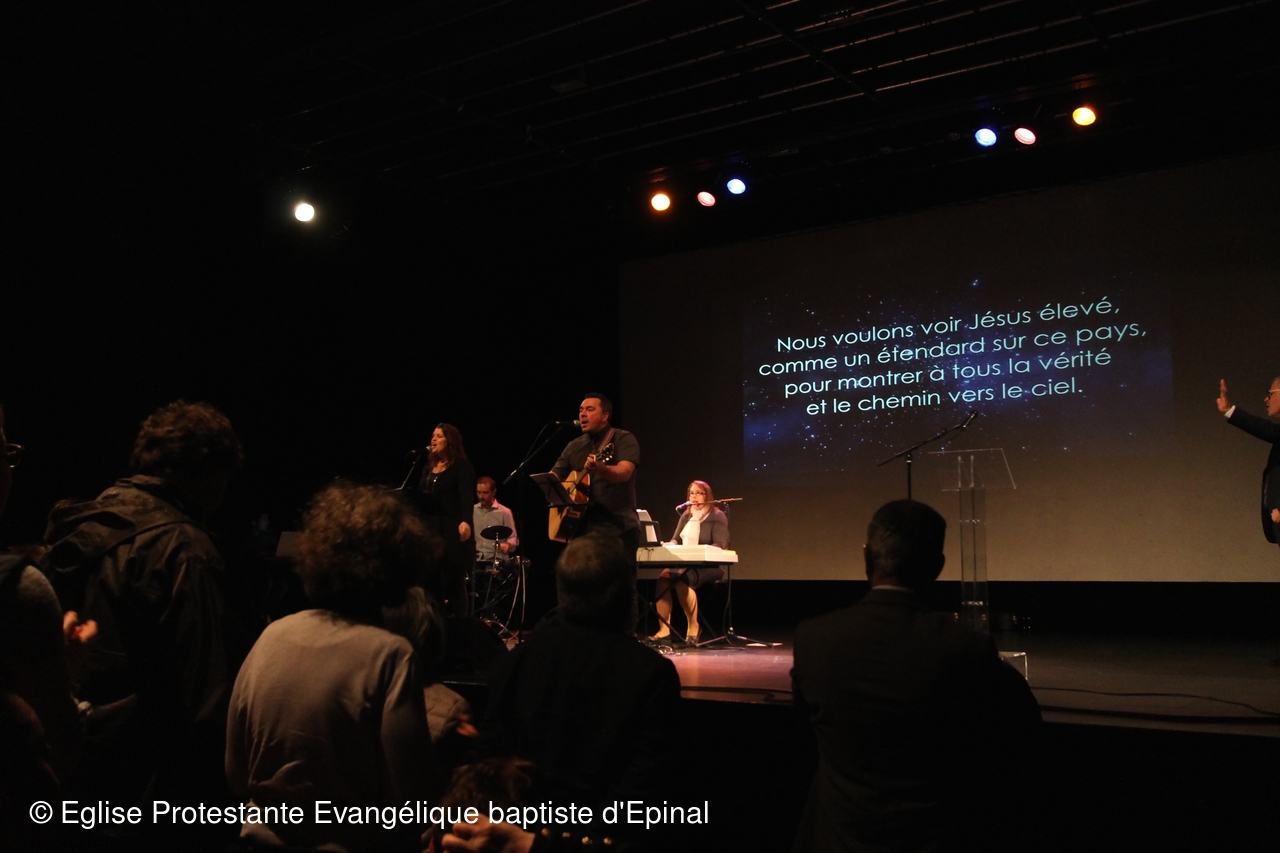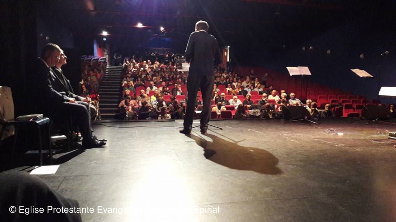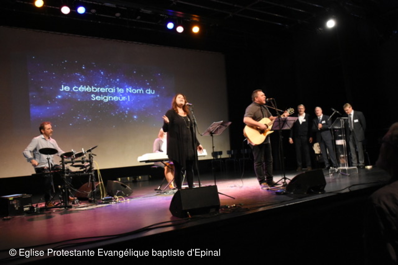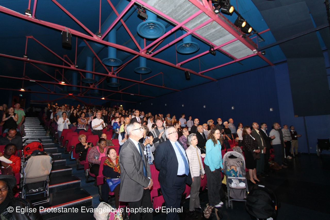 Plus de 300 personnes étaient réunies le dimanche 1er octobre à l’auditorium de la Louvière pour une célébration joyeuse et conviviale intitulée : « Ensemble autour de l’évangile ». Une façon de marquer de manière historique : les 500 ans de la réforme protestante et la création de l’antenne locale du CNEF88 fin 2016. Le Conseil National des Evangéliques de France a été créé en 2003, il se définit comme un lieu d’échange, de réflexion, de concertation et de prière, une plateforme en vue de renforcer les liens et la visibilité du protestantisme évangélique français dans le respect de ses diversités. Il représente de manière officielle une importante majorité des 650 000 protestants évangéliques en France. Une dizaine d’églises du département était réunie pour cette rencontre également ouverte à tous.