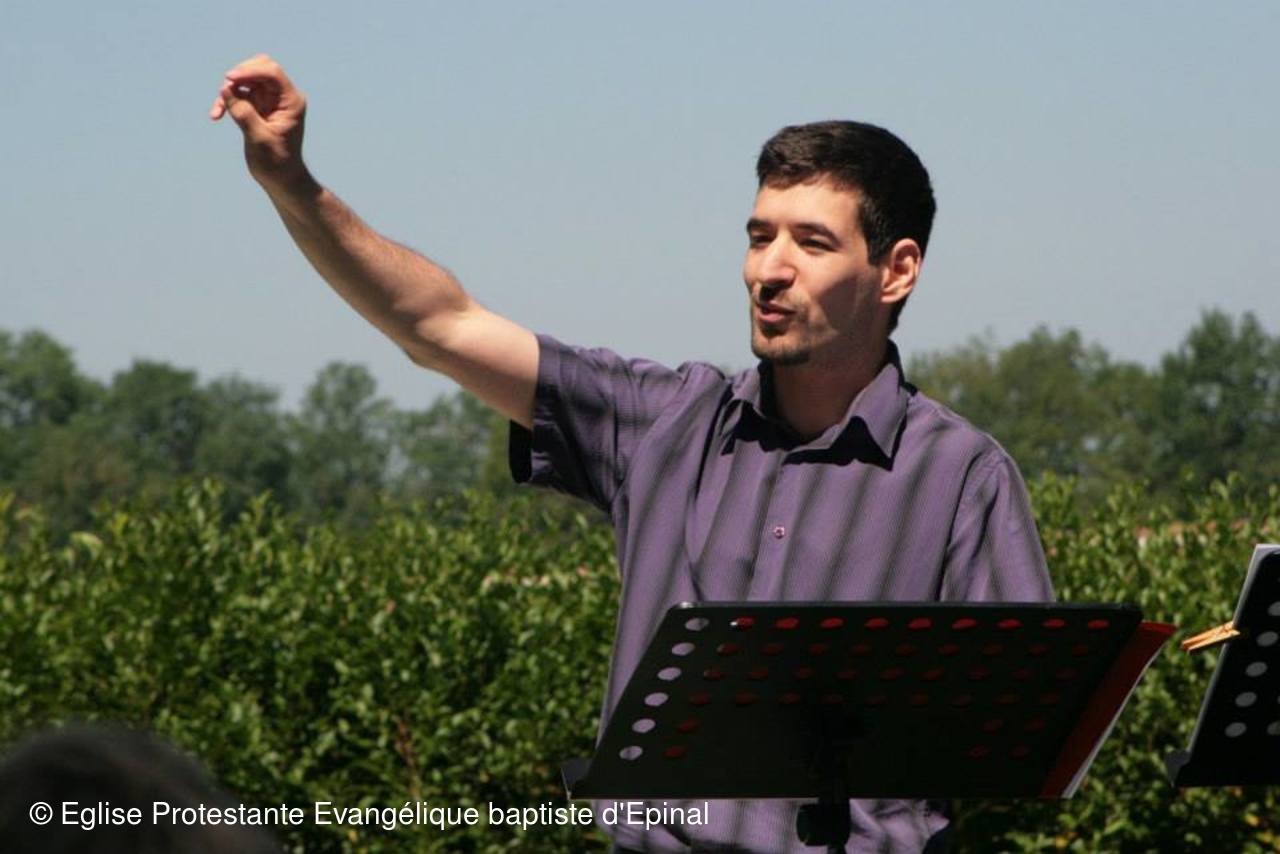 Concert de Noël illustré avec sur scène Serge Hub et ses musiciens, chants traditionnels et compositions avec lectures commentées des textes bibliques de la nativité par Philippe Monnery.